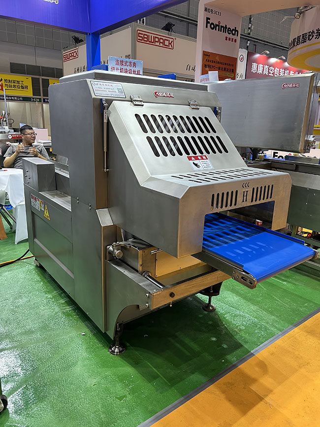 本設(shè)備可以高效的應(yīng)用在五花肉切塊、牛腩切塊、牛肉粒切割等各種凍肉切塊切丁工作中